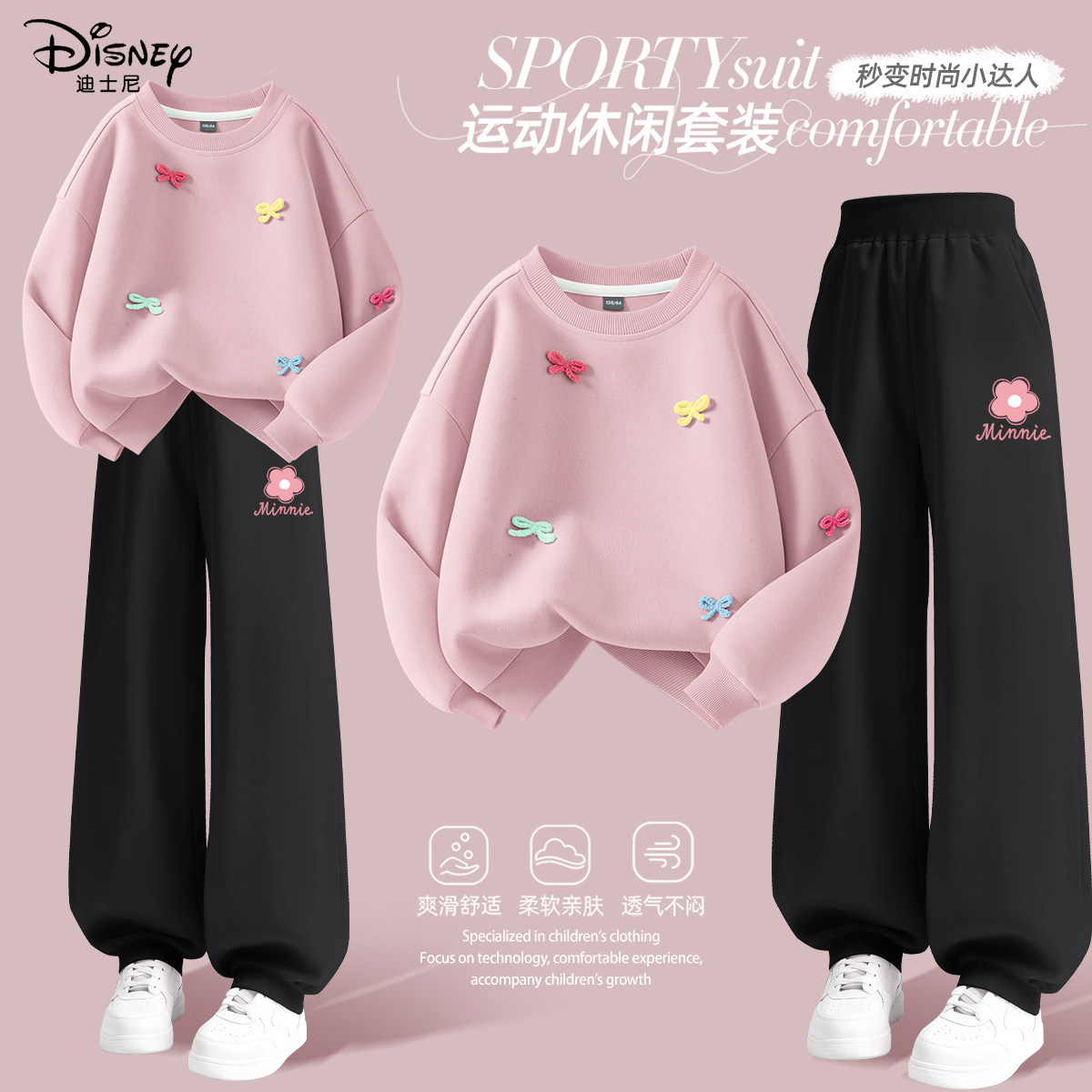 迪士尼女童春装套装好看衣服2026新款女孩卫衣春秋款童装儿童裤子