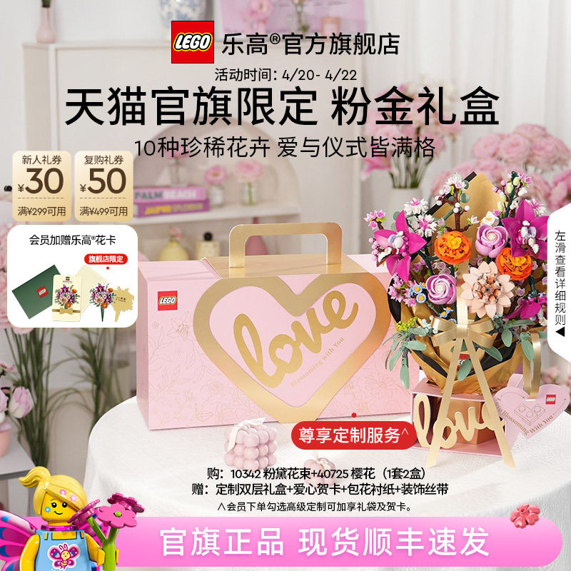 【结婚礼物】乐高官方旗舰店10342粉金礼盒永生花积木玩具摆件