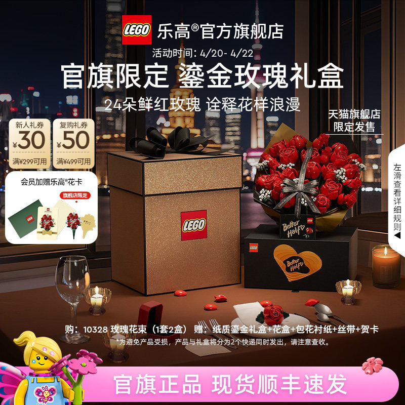 【结婚礼物】乐高官方旗舰店10328鎏金玫瑰礼盒永生花积木玩具