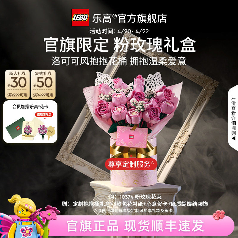 【礼物】乐高官方旗舰店正品10374粉玫瑰礼盒永生花积木玩具摆件