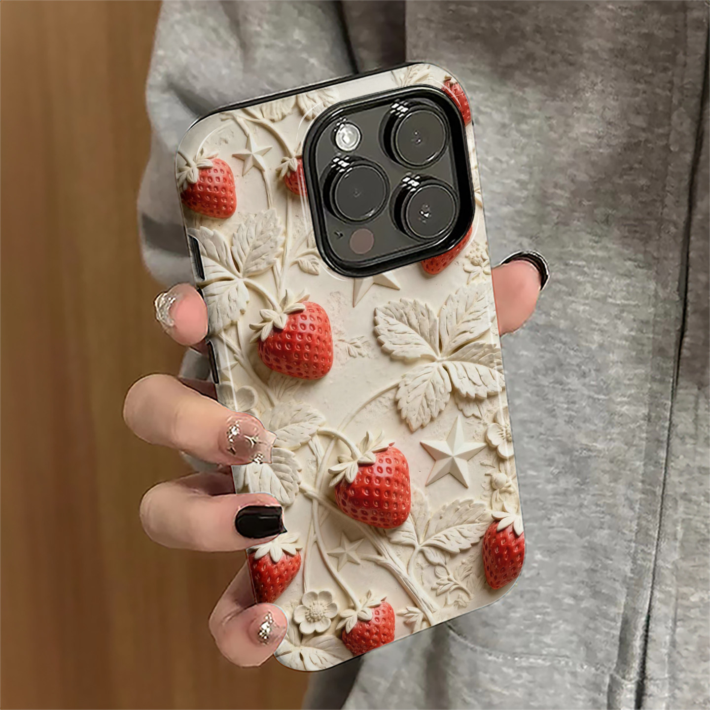 草莓蛋糕适用于苹果17/16/15/14/13/12/11/X浮雕手机壳iPhone11pro/16promax/Xsmax美食7plus/16plus可爱air