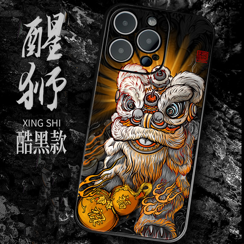 醒狮手机壳苹果17promax适用2025新年款14蛇年16国潮12中国风11微浮雕小米防摔华为高级感XR硅胶软壳7/8男士