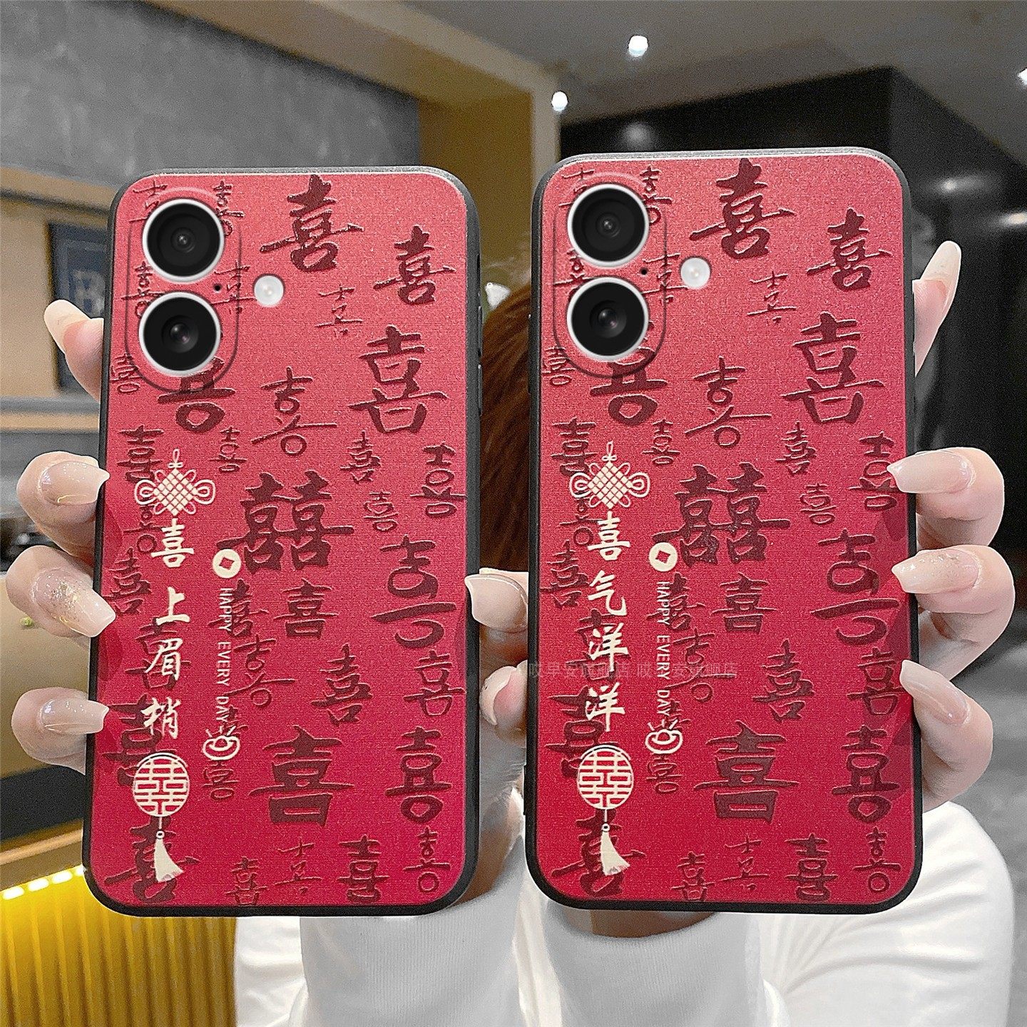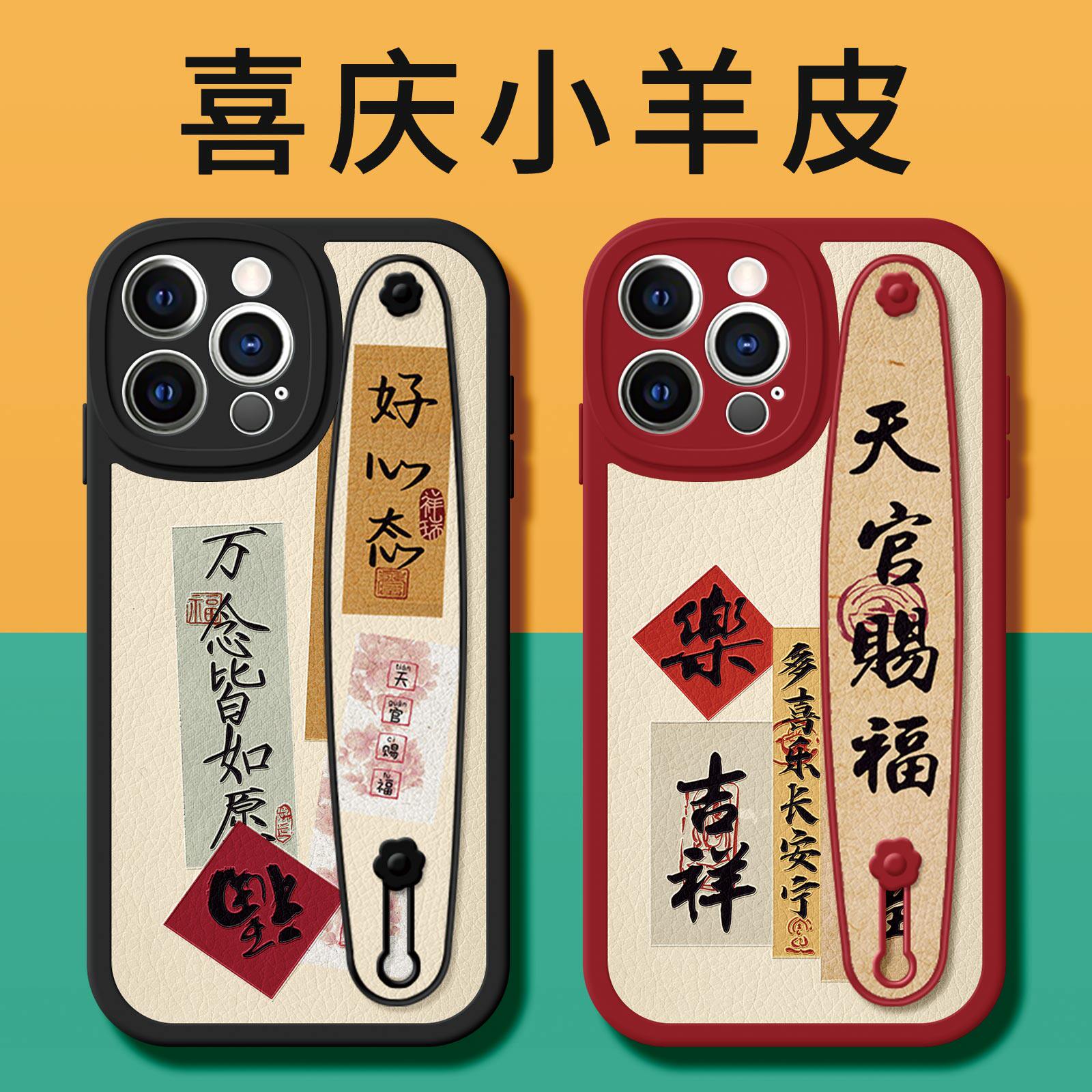 适用苹果16Pro手机壳15ProMax书法文字iPhone13喜庆12腕带11支架14plus保护XS防摔XR国潮7软8浮雕SE硅胶X女款