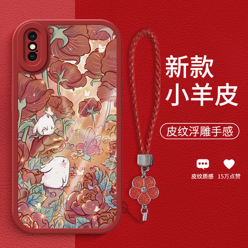 花精灵粉兔适用于苹果x手机壳xs小清新兔子xr新品iPhone14女款13promax小羊皮12硅胶8立体浮雕7plus挂绳软壳