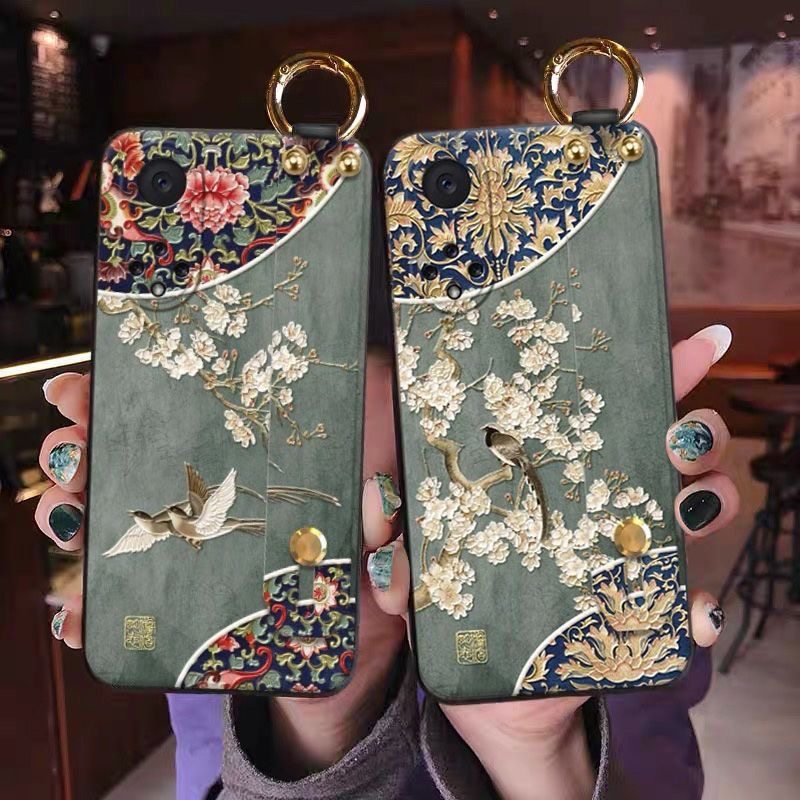 国风浮雕适用于苹果16/15/14/13/12/11手机壳iPhone 16promax飞鸟15plus腕带支架11promax精致7plus/14plus
