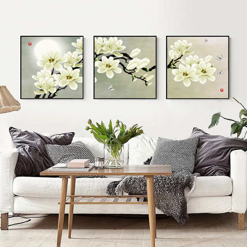新中式客厅沙发背景墙装饰画三联画餐厅茶室挂画花鸟Y中国风墙壁
