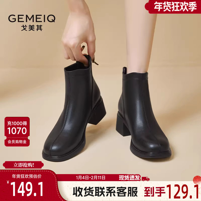 戈美其高跟短靴女款2024新款秋冬超火韩系小踝靴厚底切尔西女靴子