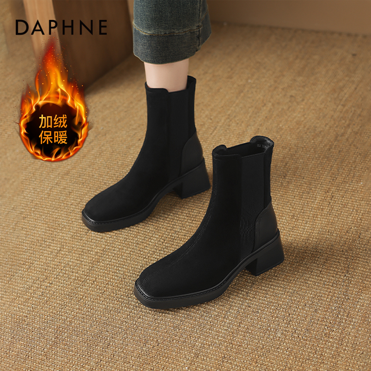 达芙妮短靴女2025新款切尔西瘦瘦靴冬季加绒皮鞋粗跟马丁靴子高跟