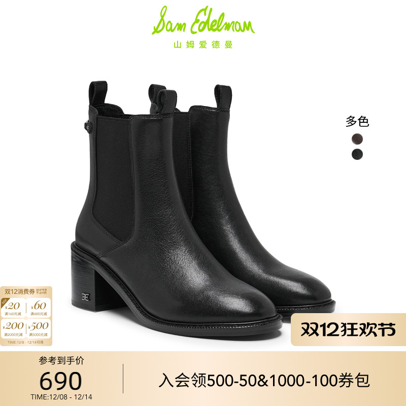 SAM EDELMAN山姆爱德曼冬时尚粗跟切尔西靴粗高跟拼接女短靴FONDA