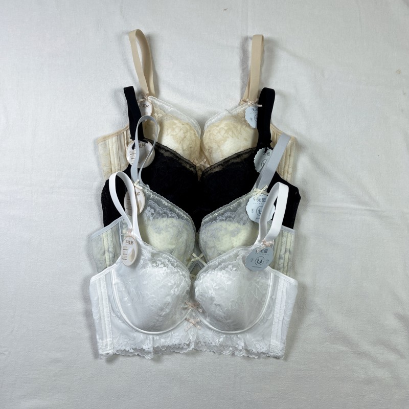 蚕丝养护芒果薄棉杯软钢圈蕾丝内衣女大胸显小聚拢调整收副乳文胸