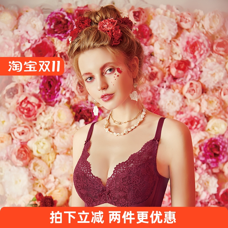 内衣女小胸聚拢中厚显大上托性感蕾丝收副乳防下垂调整型文胸罩秋
