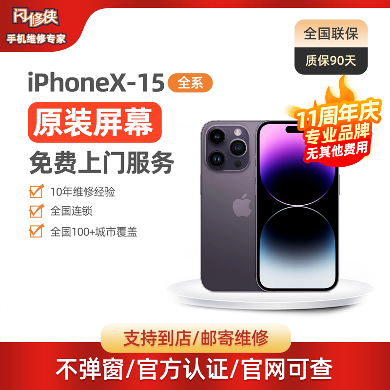 闪修侠苹果14/15原装屏幕更换iPhone13手机上门更换12ProMax维修