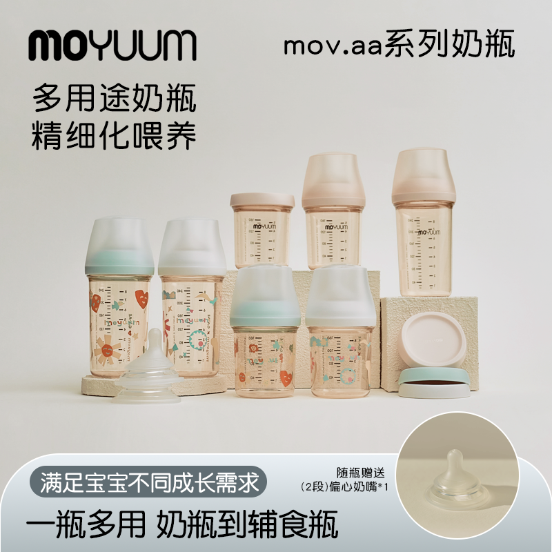 MOYUUM新生儿奶瓶ppsu偏心奶嘴0-3-6月品质喂养防摔耐高温防呛