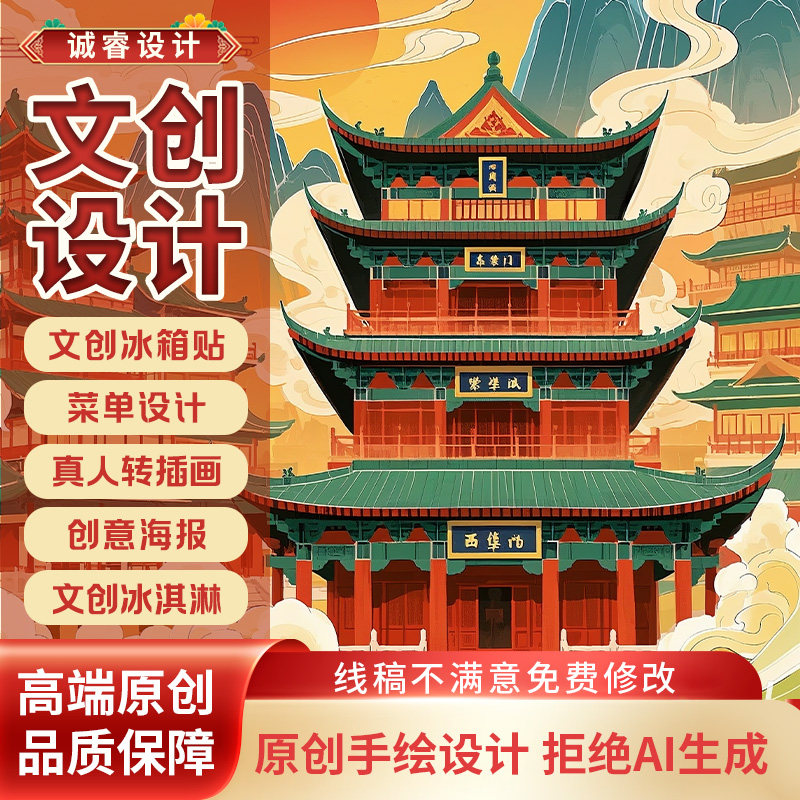 插画设计手绘图片国潮风海报包装矢量图案头像约稿定制ai插画代画