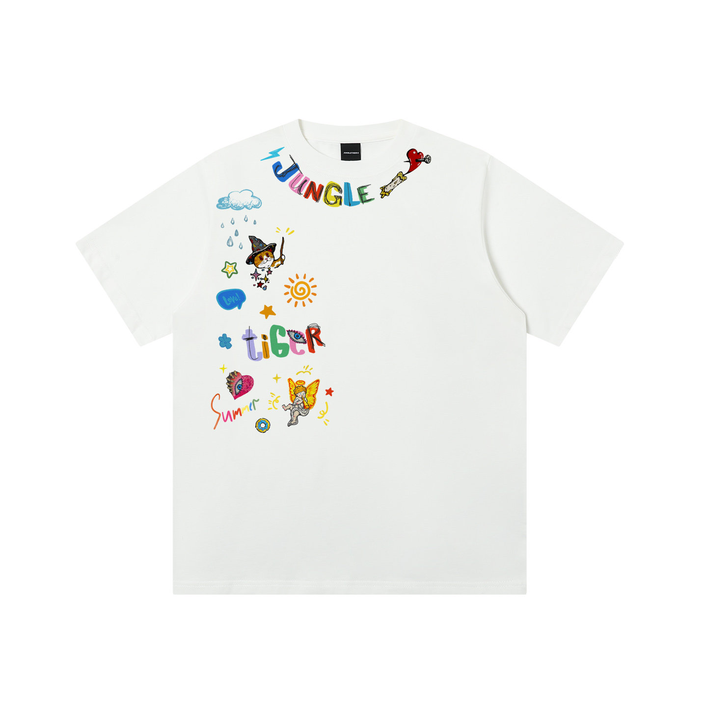 丛林老虎&插画师联名美式手绘涂鸦原创设计感落肩短袖男情侣装T恤
