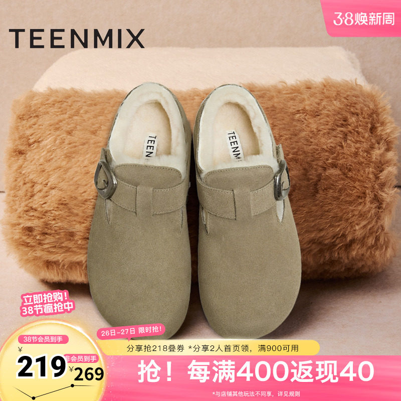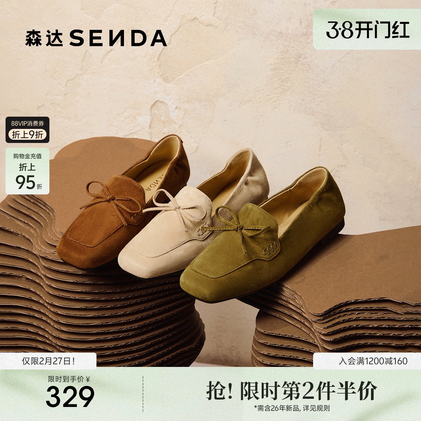 森达绒面乐福鞋女26春新款英伦风通勤一脚蹬豆豆鞋平跟单鞋ZTK26