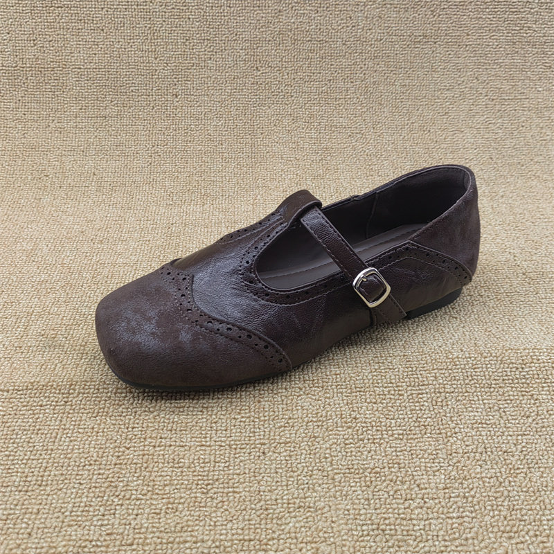 IG2026春季新款复古风真皮布洛克鞋女英伦风搭扣单鞋平跟小皮鞋