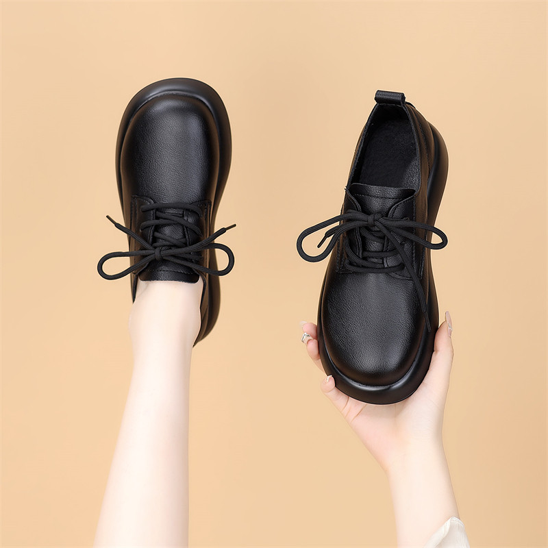 2025秋季新款英伦风复古真皮手工系带低跟软底平跟单鞋厚底鞋女