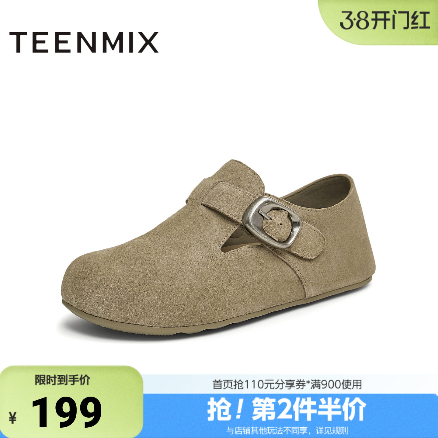 天美意2025新款平跟英伦复古百搭休闲单鞋女勃肯鞋KK010CM5