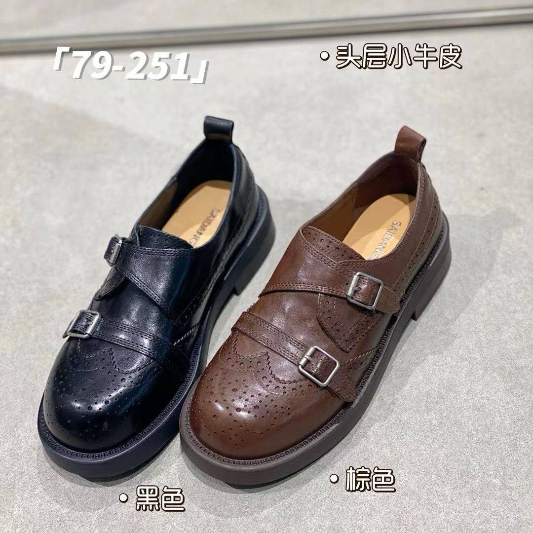 露娜皮带扣乐福鞋圆头真皮英伦单鞋女平跟舒适豆豆鞋SL124021