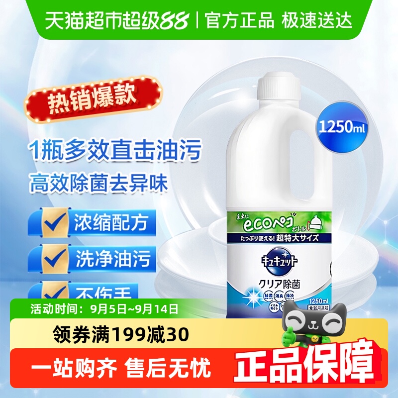 日本进口花王洗洁精厨房餐具用浓缩去油除菌清洁特大瓶桶装1250ml
