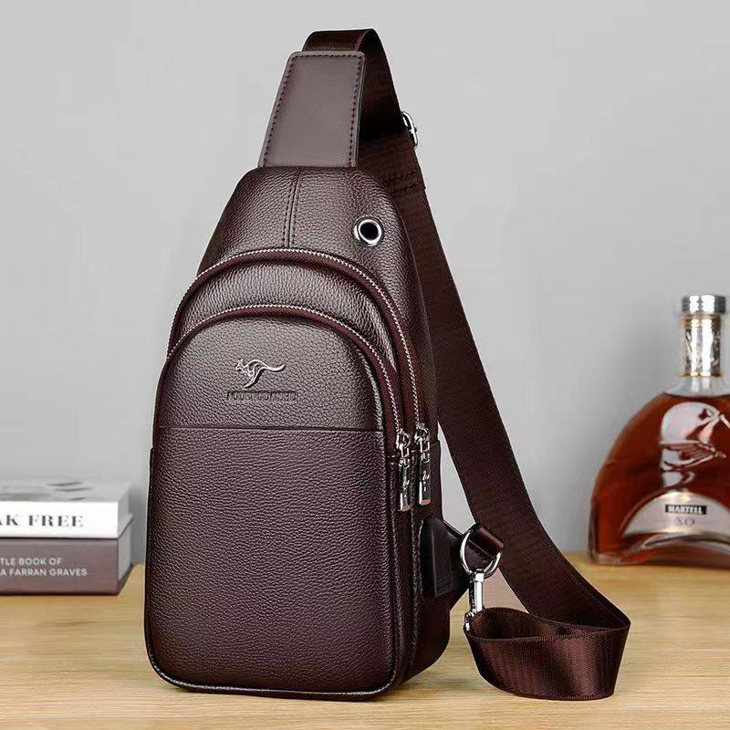 萨奇袋鼠男士胸包USB斜挎包真皮2023新款时尚单肩包斜肩包挎包潮
