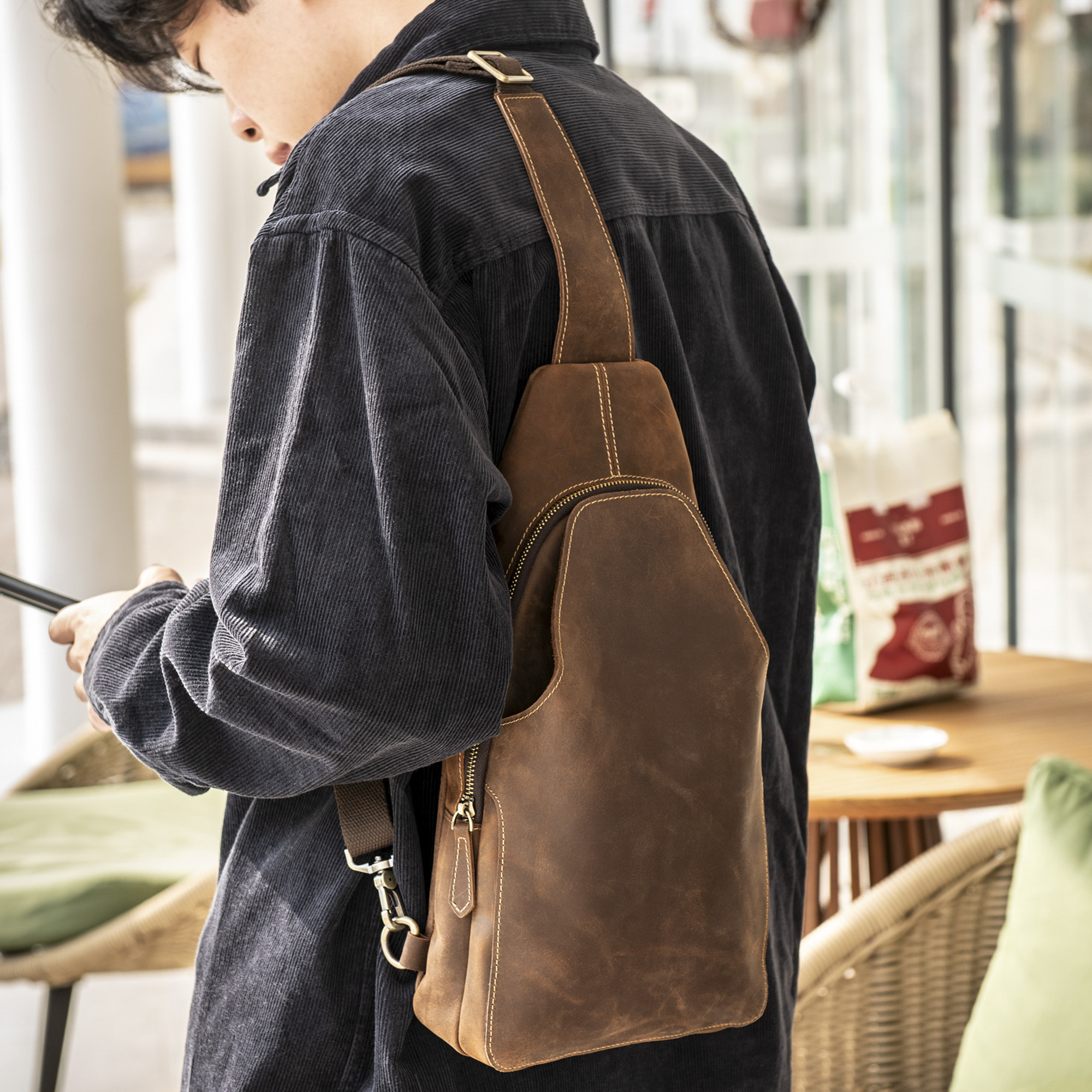 - 胸包男 牛皮