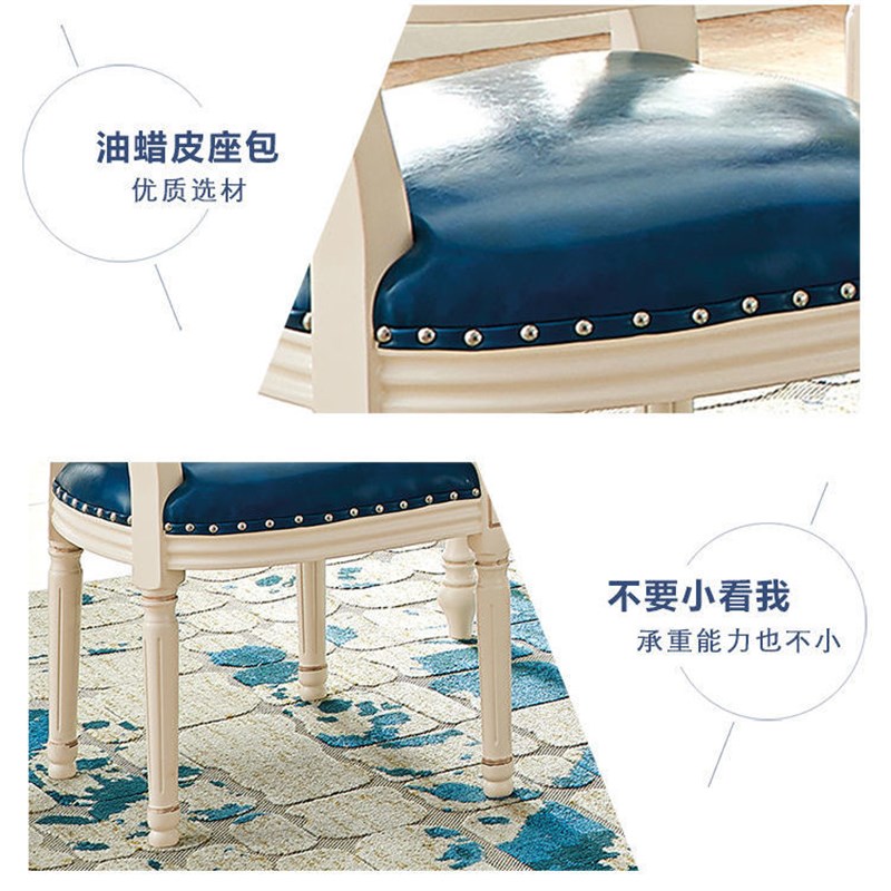 韩式书椅实木餐椅座椅美式乡村皮艺带扶手书椅白色电脑椅休闲椅子