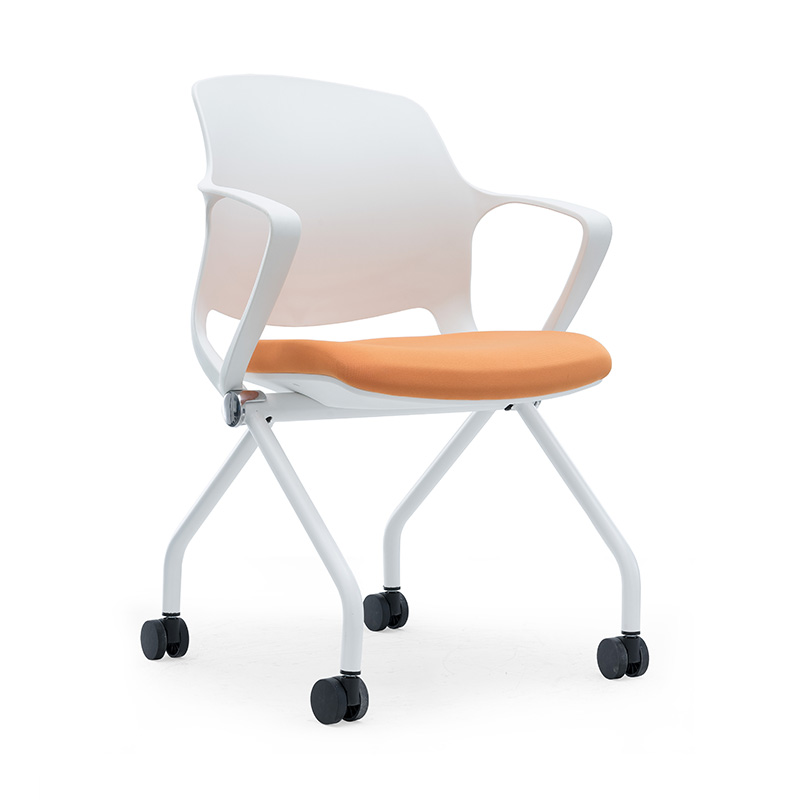 折叠会议椅办公椅简约白色塑料靠背椅四脚电脑椅带轮职员培训椅子