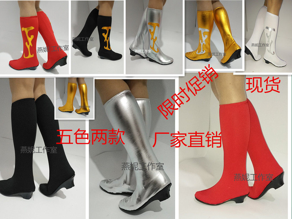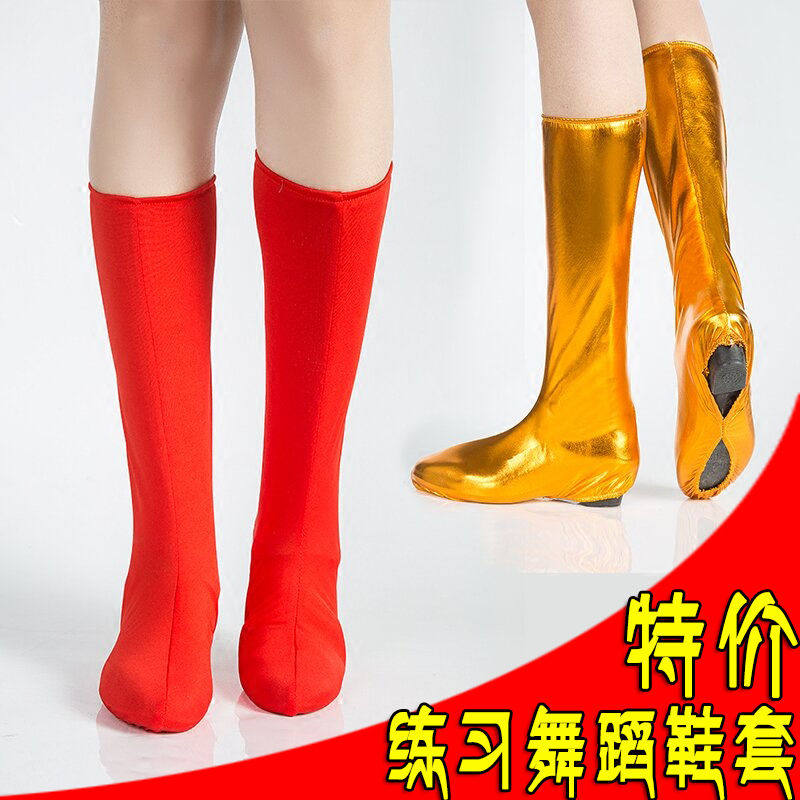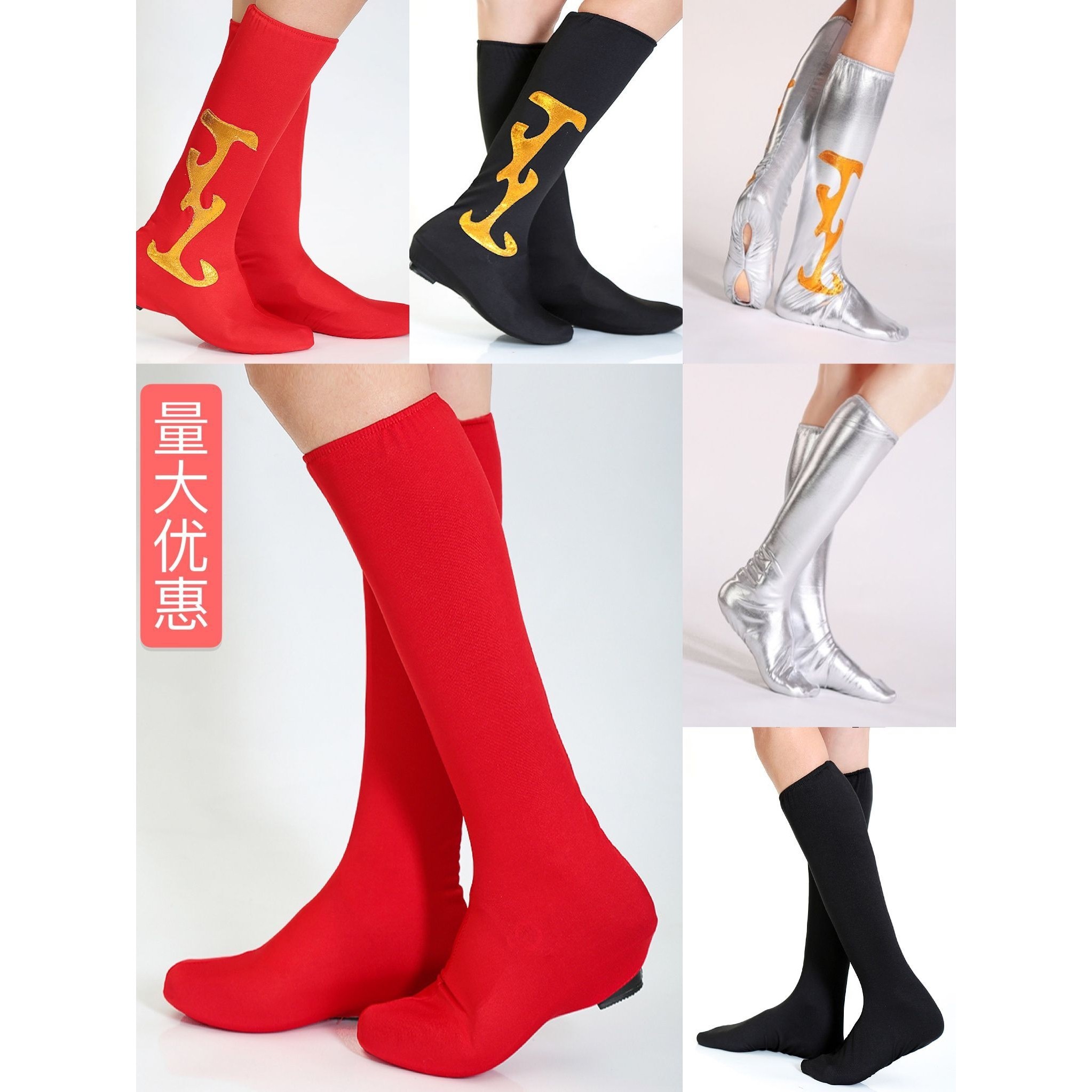 成人舞蹈鞋套跳舞靴子蒙古藏族女兵军装舞台袜套表演出服红色包邮
