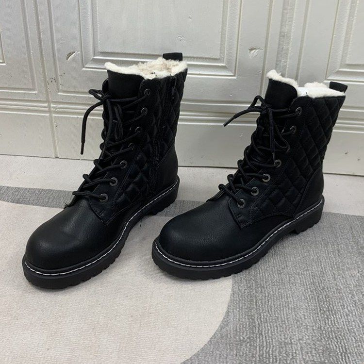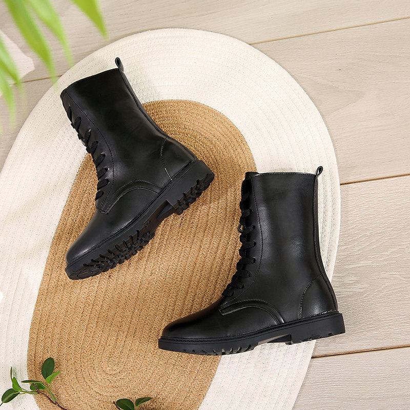 2025冬季新款真皮高帮女靴军装风搭扣系带原创手工马丁靴牛皮