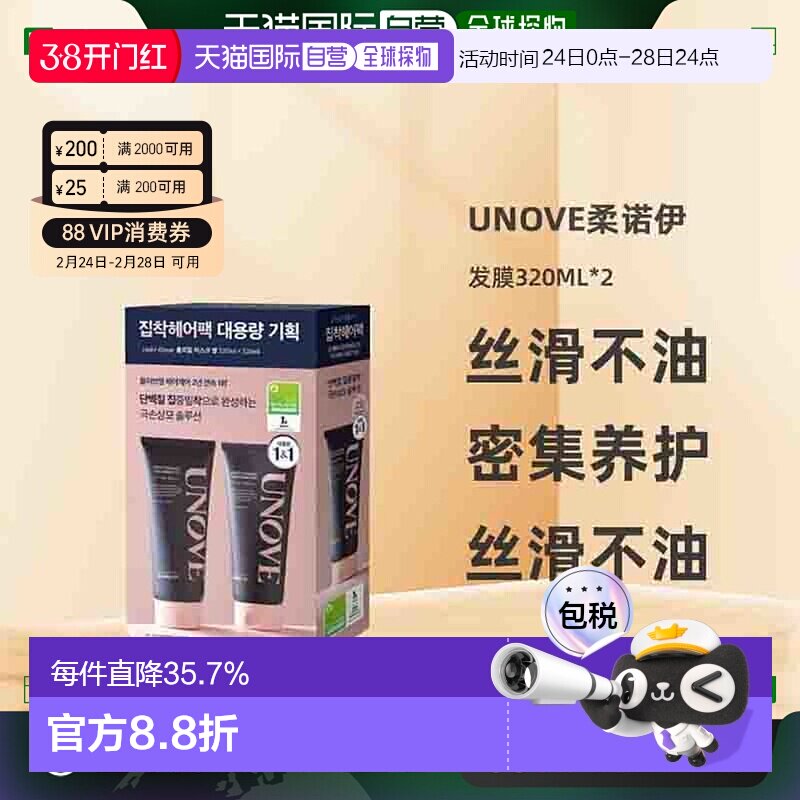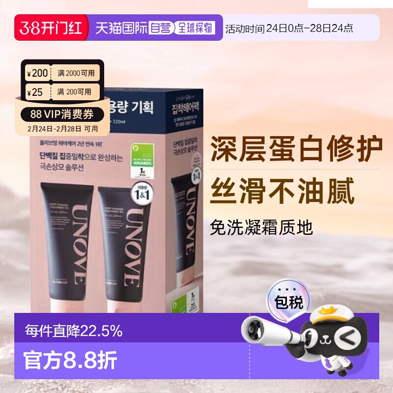 韩国直邮unove柔诺伊发膜大容量深层保护柔顺防躁顺滑320ml*2正品
