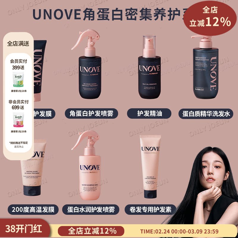 金珉奎同款!韩国柔诺伊UNOVE发膜洗发水护发喷雾发油修复干枯顺滑