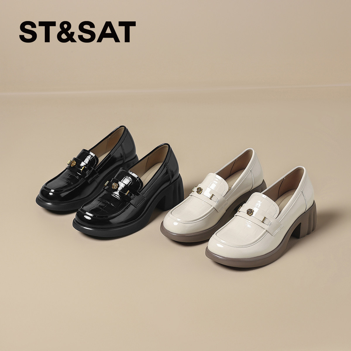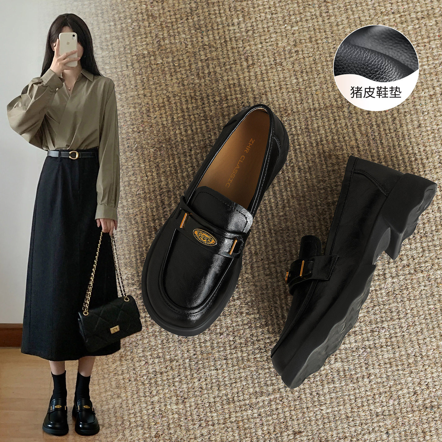 - 粗跟 皮鞋单鞋