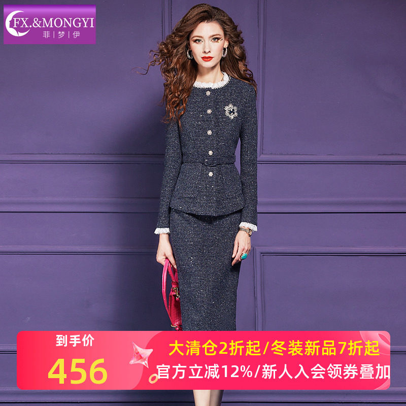 菲梦伊原创含羊毛小香风套装女冬季优雅端庄名媛毛呢上衣包臀半裙