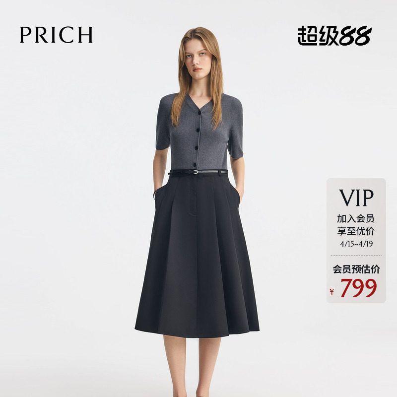 pusumede 法式气质针织v领连衣裙女新款修身收腰a字裙小个子短裙