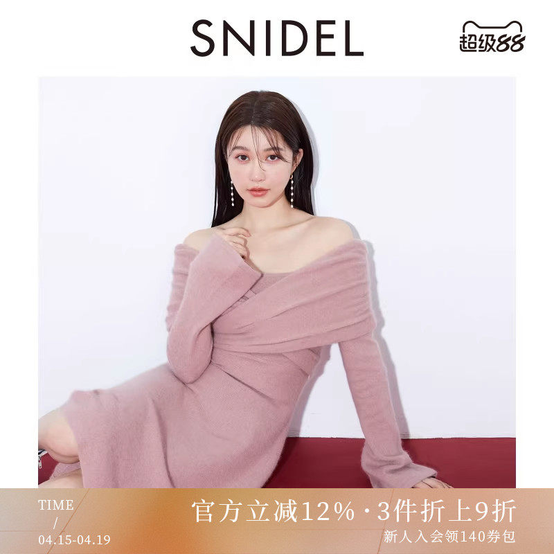 SNIDEL春夏款甜美交叉V领露肩修身针织连衣裙SWNO241257