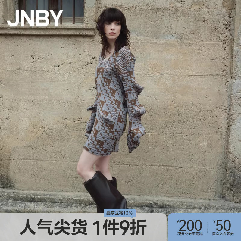 JNBY/江南布衣春秋针织连衣裙立体造型V领修身复古裙子5N8G14040