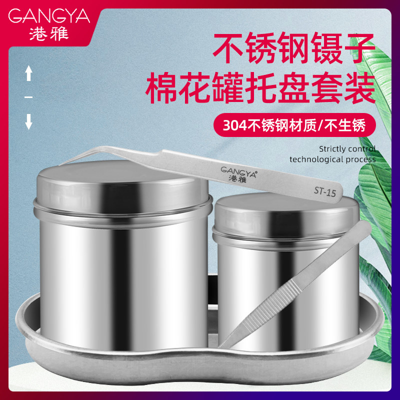 不锈钢棉花缸加厚托盘镊子筒腰盘半永久纹绣工具棉花罐子美容清洁