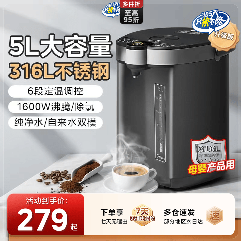 美的电热水壶恒温智能5L大容量电热水瓶烧水壶家用保温一体饮水机