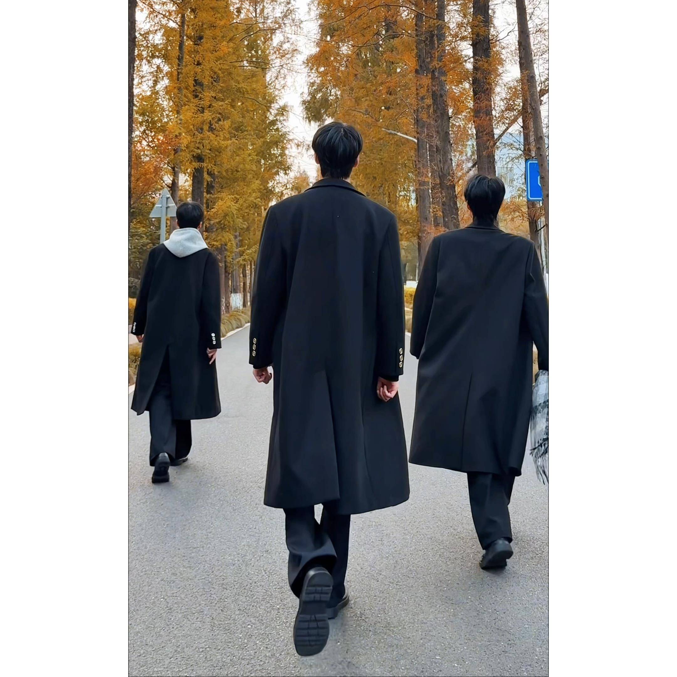 新款韩版风衣外套男秋冬季休闲英伦风毛呢大衣男士超长款过膝脚踝