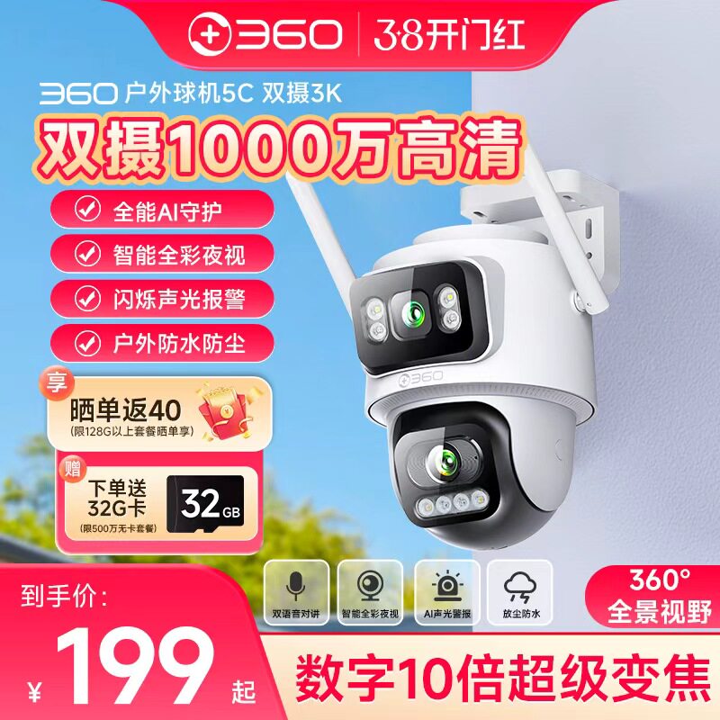 360室外摄像头监控器家用户外手机远程门口无线网络360全景摄影头