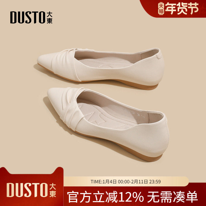 大东dd单鞋女平底2025秋季新款软皮女鞋休闲一脚蹬工作尖头皮鞋女