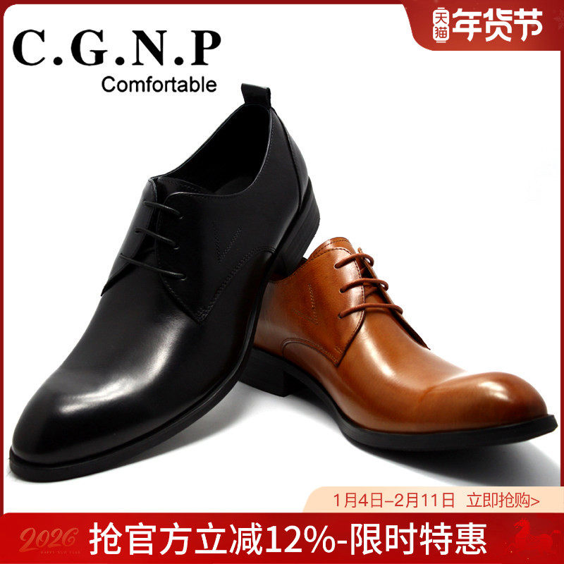 红蜻蜓男鞋春秋真皮透气商务正装英伦德比鞋男士增高新郎尖头皮鞋