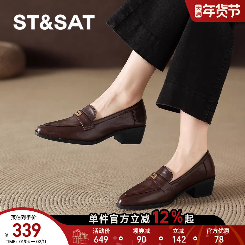 星期六尖头皮鞋女2025新秋冬通勤老钱风一脚蹬英伦乐福鞋女士皮鞋