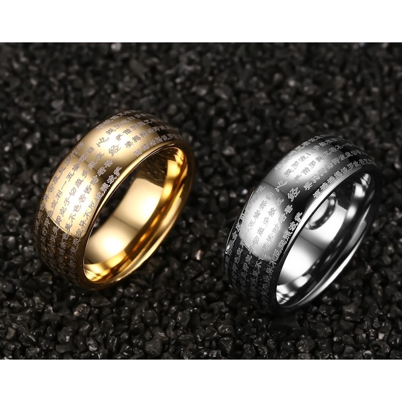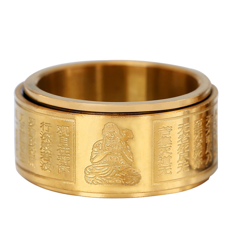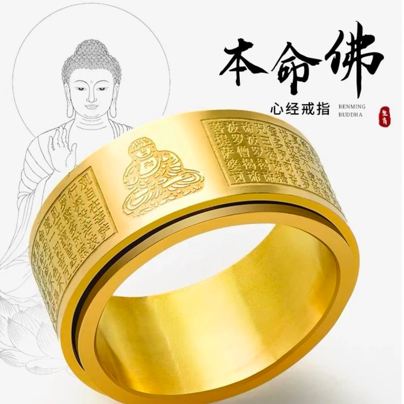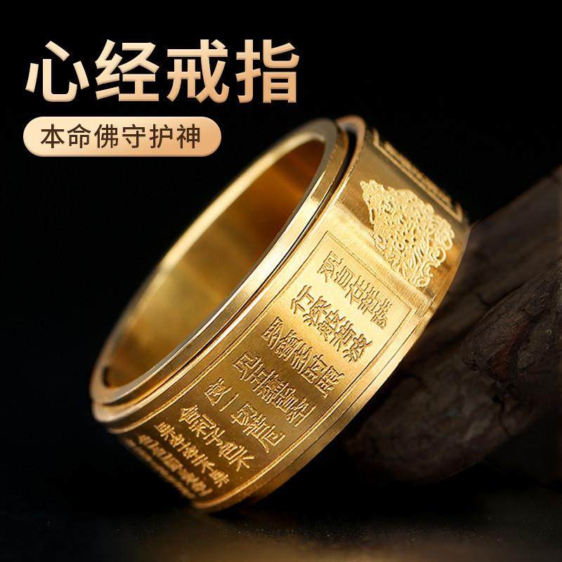 心经戒指可转动十二生肖本命佛情侣黄金色银钛钢指环男女士送礼款