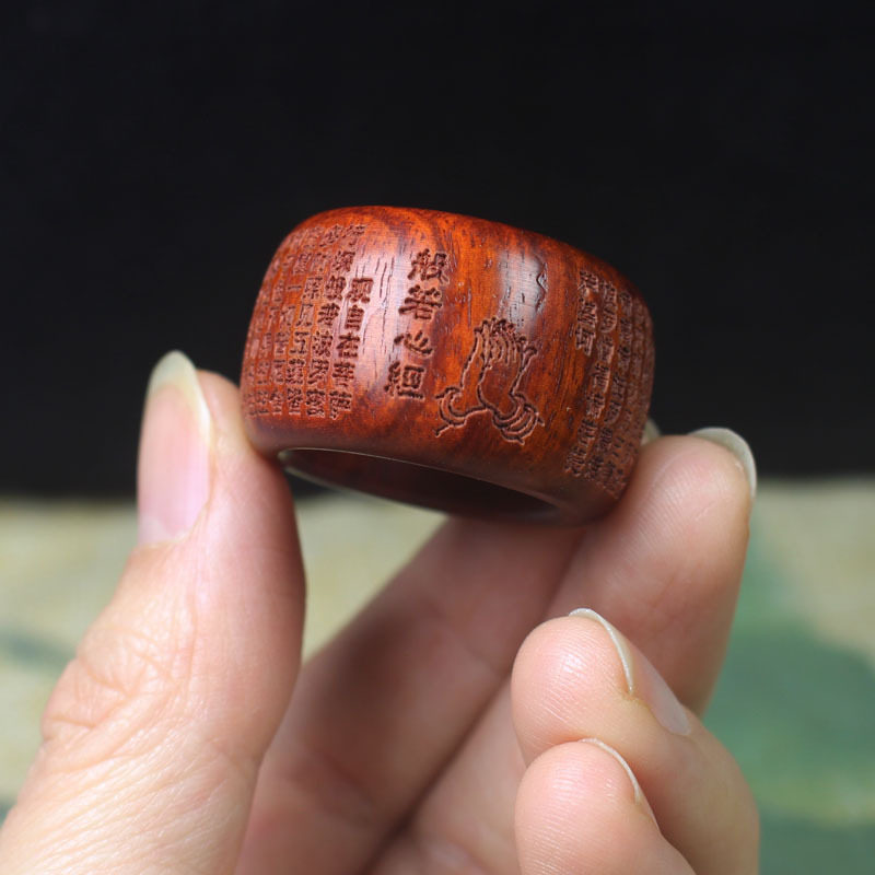 印度小叶紫檀心经扳指戒指随身实木红木盘玩男士手把件吊坠工艺品