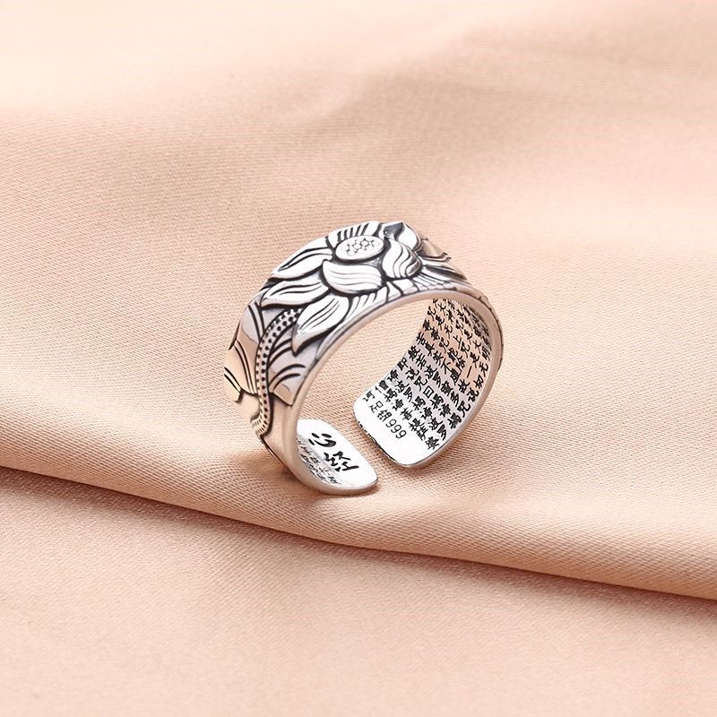 复古平安喜乐心经戒指新中式古风简约轻奢气质小众时尚高级开口戒