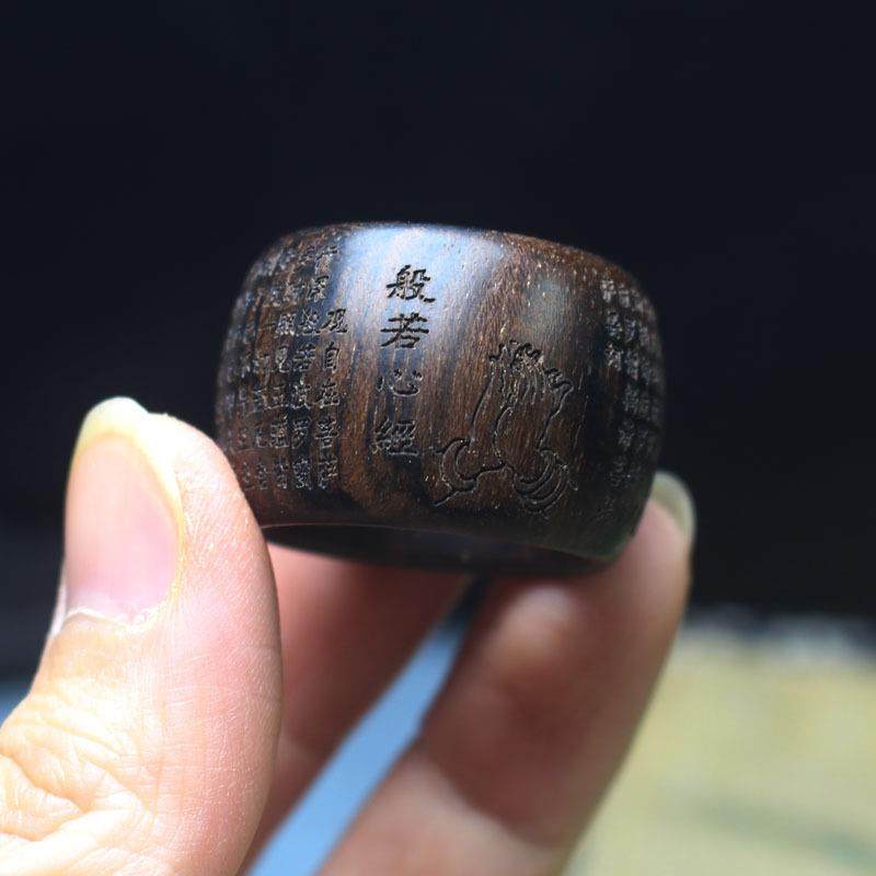 2026沉香木雕刻心经扳指指环木雕把件手工饰品戒指礼物木饰品文玩