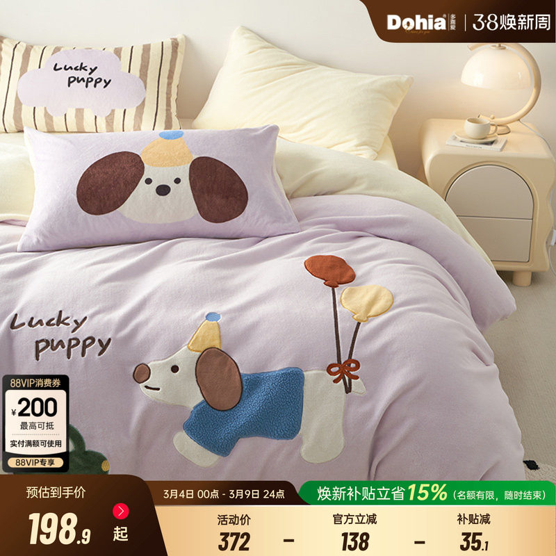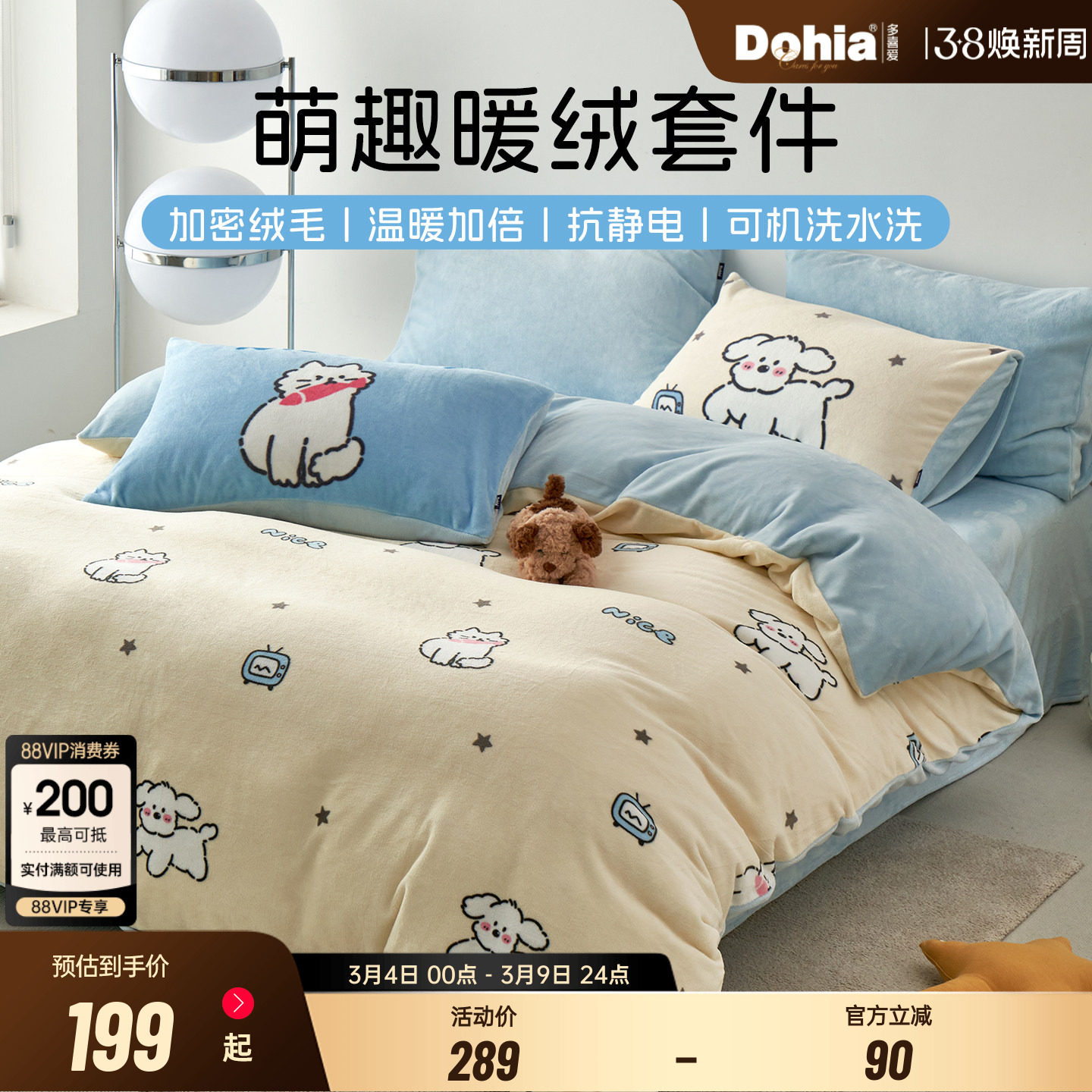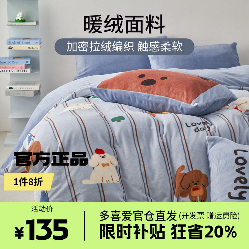 多喜爱卡通珊瑚绒四件套冬季暖绒加厚保暖套件床单被套三件套小狗